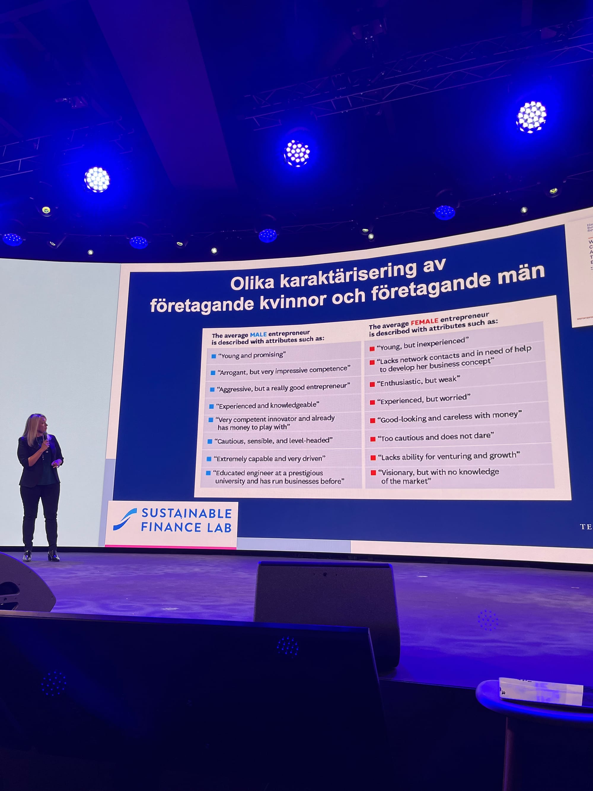 Malin Malmström talked about her research on stereotypes within the VC industry, called "VC Stereotypes About Men And Women Aren't Supported by Performance Data". Her research shows that, super short summarised;